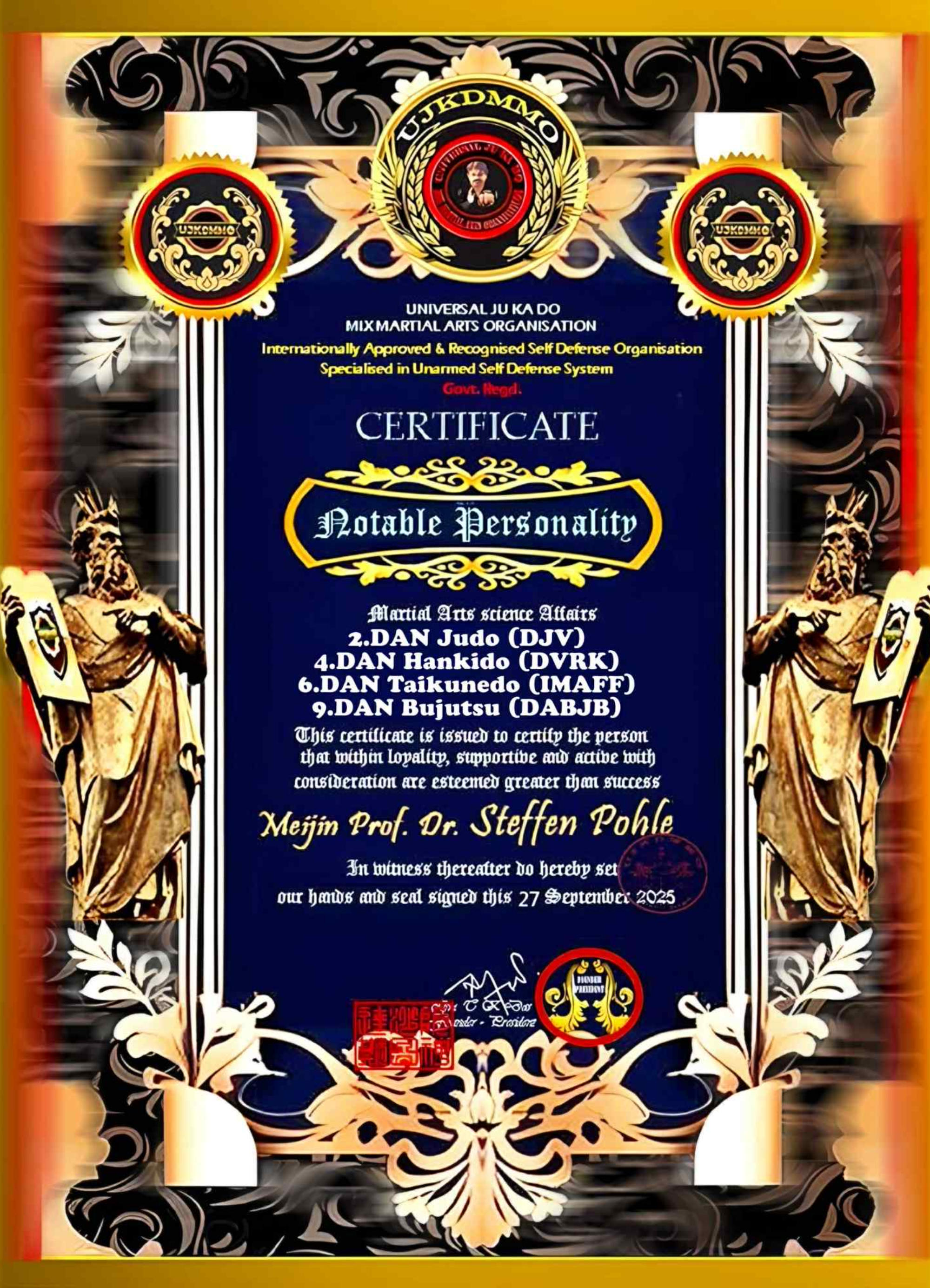 Meijin Prof. Dr. Steffen PohleTechnical Advisor9. Dan Bujitsu (DABJB)6. Dan Taikunedo (IMAFF)4. Dan Hankido (DVRK)2. Dan Judo (DJV)